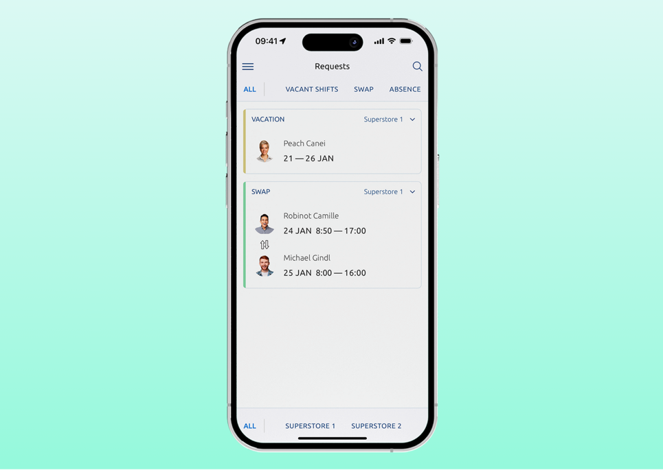 Håndter ferier, sykefravær og akutte fravær enkelt med bare noen få klikk. Godkjenn forespørsler på farten, og få detaljerte oversikter gjennom et nettbasert administrativt system for korrekt planlegging.